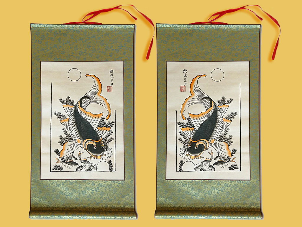 Tên Tranh: Cặp Tranh Dân Gian Đông Hồ Lý Ngư Vọng Nguyệt