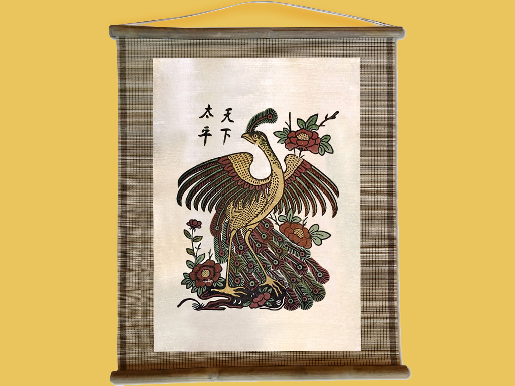 ( từ 8h00 - 22:00 mỗi ngày)Bức Tranh Đông Hồ Chim Công Thiên Hạ Thái Bình với hình ảnh con công đang xòe cánh bên gốc hoa hồng là một tác phẩm nghệ thuật đẹp mắt. Loài chim Công còn được biết đến với tên gọi khác là chim khổng tước, thuộc họ trĩ và được coi là đại diện của Phượng Hoàng trong phong thủy. Với bộ lông óng ánh, xòe ra hình quạt đẹp mắt, chim Công thường được coi là biểu tượng của quan chức, tiền tài và uy quyền trong thời phong kiến.
