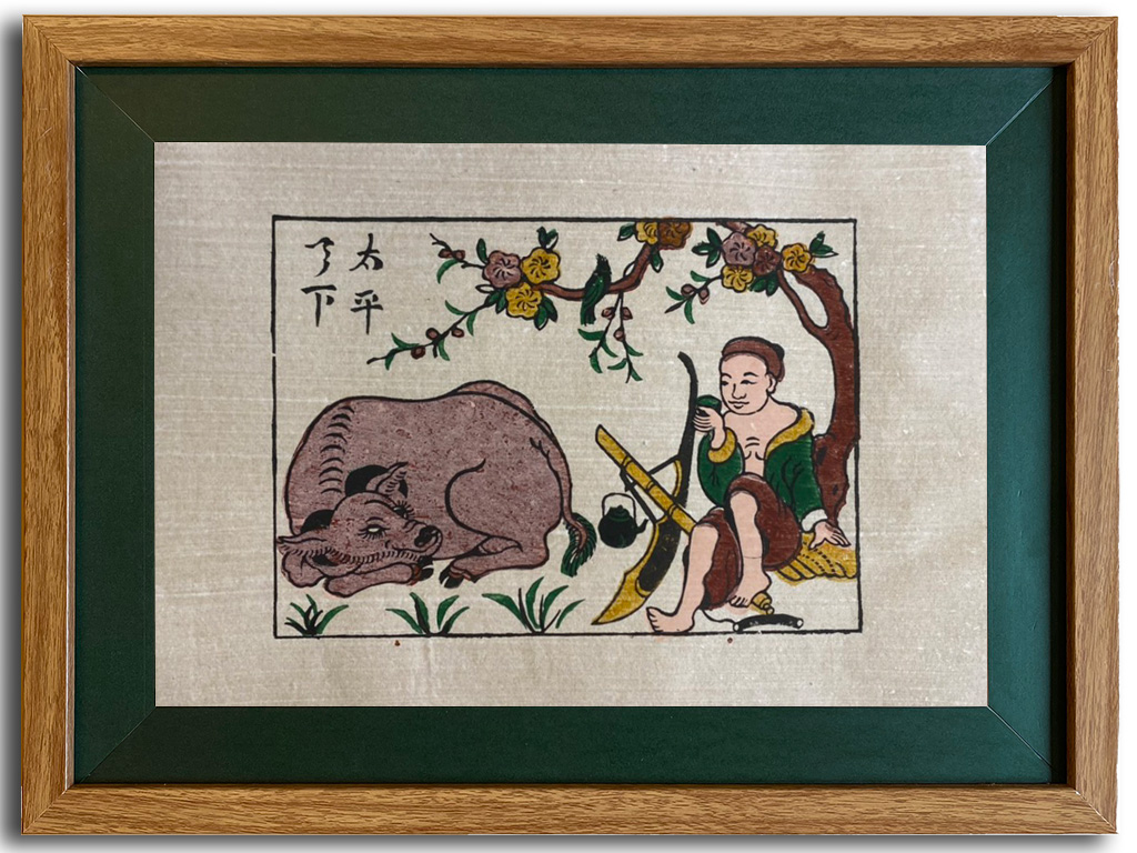 Bức tranh Đông Hồ Nông Nhàn này phác họa hình ảnh người nông dân nghỉ ngơi trong khi con trâu đang ăn cỏ, và nó đại diện cho một trong những bức tranh dân gian tiêu biểu của Việt Nam. Những tác phẩm nghệ thuật này là biểu tượng của nền mỹ thuật cổ truyền và mang trong mình câu chuyện hay các biểu tượng dân gian đặc trưng.