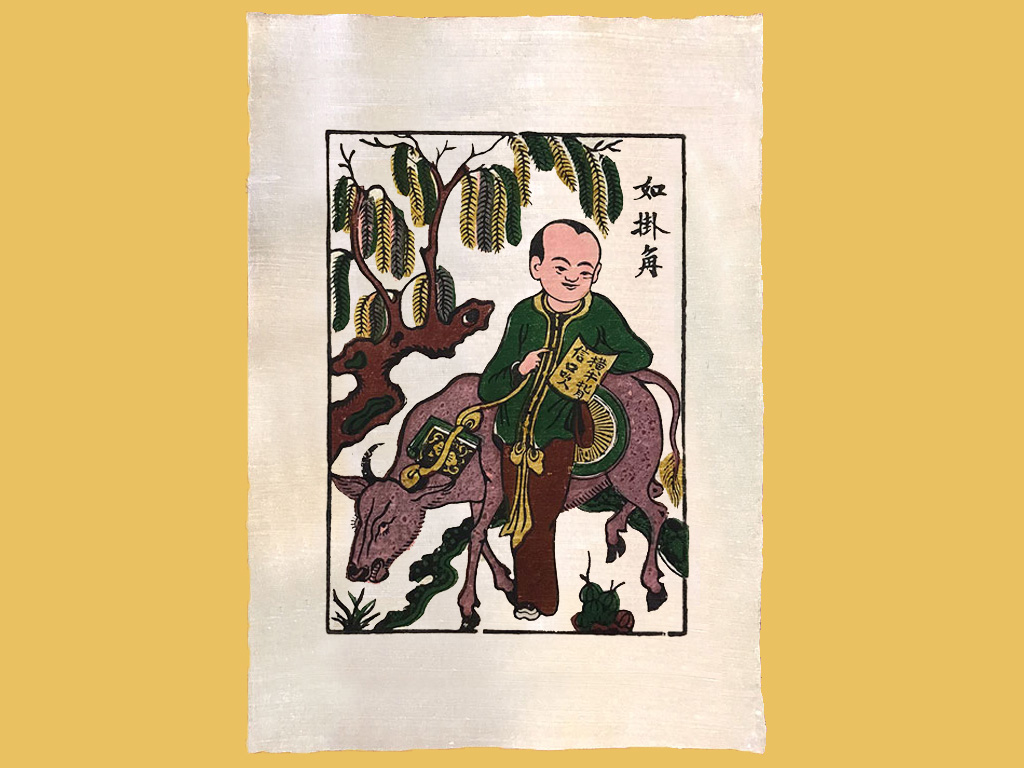 ( từ 8h00 - 22:00 mỗi ngày)Bức Tranh Đông Hồ Hiếu Học Chăn Trâu Đọc Sách miêu tả cảnh một em bé vừa chăn trâu vừa học bài, khen ngợi sự chăm chỉ của em bé trong việc học hành và khuyến khích con trẻ nỗ lực học hành để ghi danh cho gia đình, dòng họ. Tranh này thường được các bậc cha mẹ mua về để dán ngay trên chỗ con cháu mình đèn sách. Trên tranh có ba chữ Hán chú giải là “Như quải giác” – nghĩa là sừng trâu treo sách đi học.